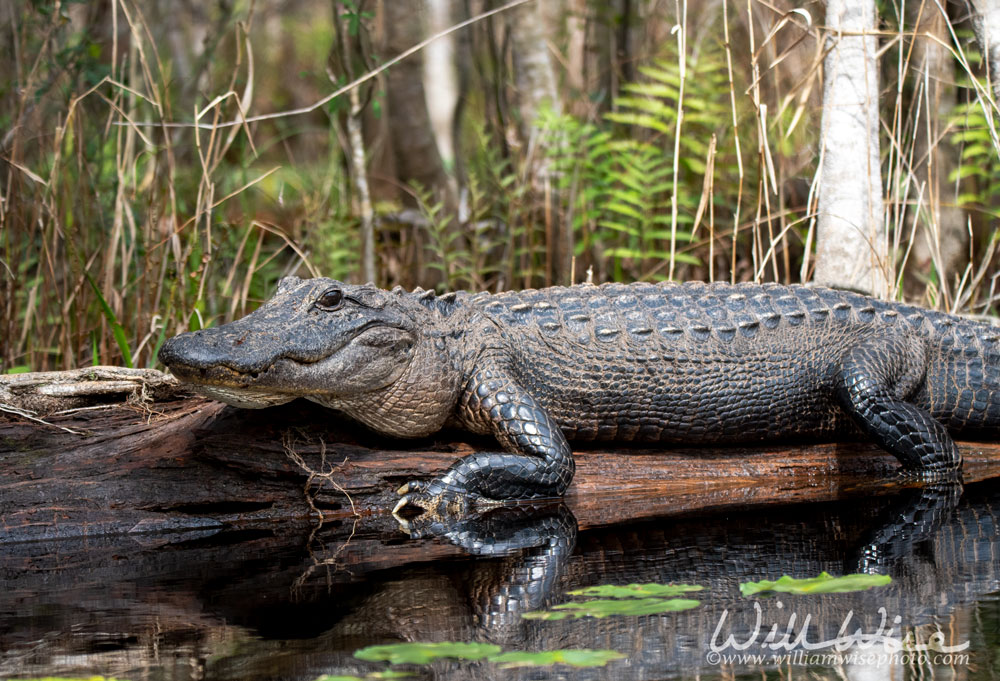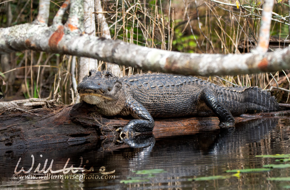The Okefenokee Swamp presents the adventurer an impressive number of alligator encounters. Large gators often line the edges of Okefenokee’s lakes, like Billy’s Lake, Minnie’s Lake and Big Water. These gators rarely pose a threat to humans, and more often than not they dive into the water before you even approach too closely. But at times they will allow some real close-up shots. (The alligator in this series of photos was very reluctant to leave its warm sunning log.)