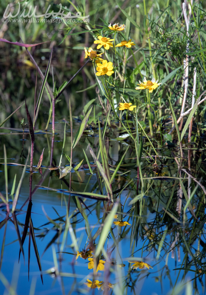 Splashes of yellow dot the Okefenokee landscape as wildflowers of the Bidens genus bloom in the spring and summer. I have seen them growing on the prairies, in shallow waters alongside Spatterdock, and in tussocks upon old stumps in the middle of the larger lakes. They are commonly called Beggars Ticks, Bur Marigolds and Tickseed Sunflowers. They are a sun-loving wildflower and generally found in moist soils such as marshes, wet meadows and roadside ditches.