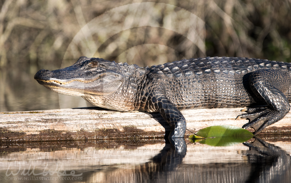 Huge, intimidating, armored beasts all decked out in bony spikes and dark leather – they are the rock stars of the reptile world! And I’m the paparazzi that follows them. What exhilarating photo subjects (sure beats baby photography!). Most of the time the gators lay there or slowly slide into the swamp water as you pass by. But occasionally they will make a dramatic, thrashing dive just to emphasize the super stars they really are.