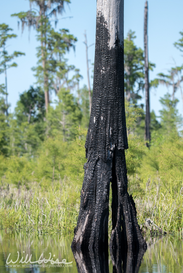 According to the Georgia Wildlife Federation, “Fire is a necessary part of the swamp ecosystem. When it burns the swamp, usual plant succession is interrupted, preventing swamp prairies from filling with cypresses, black gums, and bays and becoming Woodland.” (Georgia Wildlife: The Okefenokee Swamp, Georgia Wildlife, Volume 6, Number 1, from Georgia Wildlife Press; 1997.)