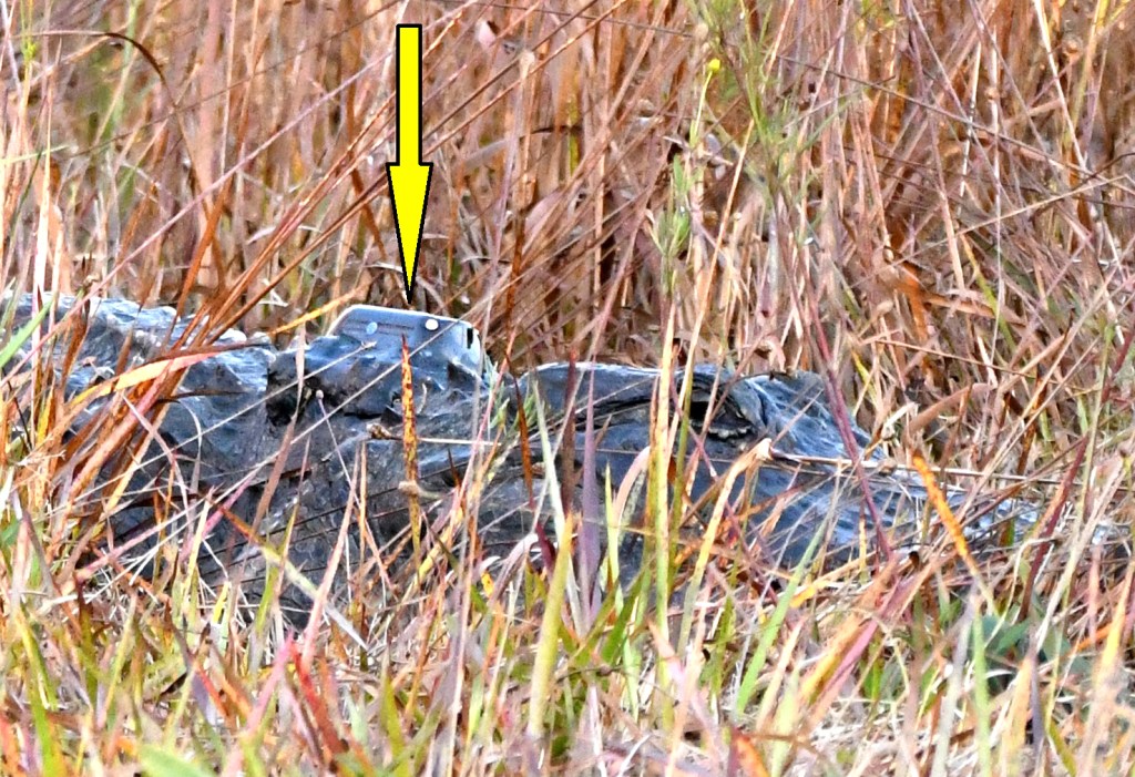 Reviewing my photographs from a November, 2021 trip to the Okefenokee National Wildlife Refuge, I noticed a large black lump on the back of an alligator. If I had not seen an article on the subject, I would have thought it was a tumor or other growth. But I had read an article from the University of Georgia about the tracking and studying of alligator movements in the Okefenokee National Wildlife Refuge. Researchers from the UGA Marine Extension and Georgia Sea Grant are using satellite tags to track the movements of adult alligators. Their updates can be seen at https://www.facebook.com/UGACoastalEcologyLab.