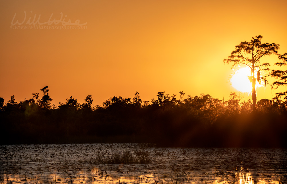 During my November 2021 visit for the photography workshop hosted by the Refuge, I didn’t have time after the class to launch my own canoe, so I took the evening sunset cruise. The guide motored us out to Grand Prairie and parked the boat. It was like watching a Discovery Channel movie at a drive-in theater… but even better! The purples and oranges of the skies and lowering sun were so vibrant, while Cypress silhouettes marked the horizon with incredible detail. There was a tangible serenity, like being wrapped in a warm blanket on the somewhat cool evening!