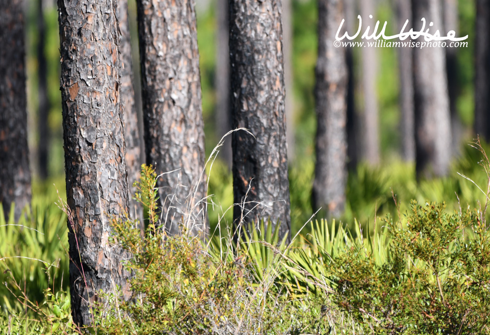 Not all of the Okefenokee is swamped with water. There are some sandy islands within the refuge and plenty of pine uplands that surround the swamp. Large puddles readily form after rainfall, but do drain, especially in a drought. Slash Pine, Saw Palmetto and grasses are the dominant growth in these upland areas. The once over-logged Longleaf Pine is making a comeback in these upland areas due to managed plantations by the U.S. Fish and Wildlife Service. The drier upland areas provide habitat for wildlife not as regularly found in the wetter habitats like Glass Lizards and Gopher Tortoises. One may also be more likely to find one of the three rattlesnake species – Eastern Diamondback, Pygmy and Timber – found within the Refuge in the drier upland areas.