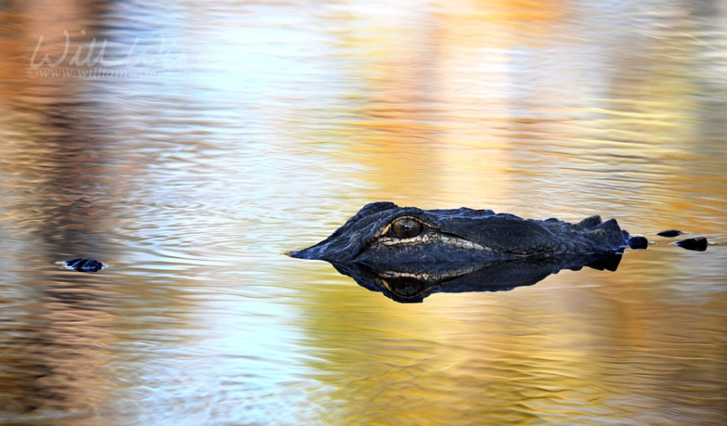 Just below the dam, a small group of White Ibis were foraging the banks of the Suwannee River and a cautious gator swam submerged in the mirror-like blackwater that reflected the October fall colors. A bit further northward up the grassy embankment, a young White-tailed Deer buck snapped to attention when he caught my scent. The same Snowy Egret that I had photographed from my canoe an hour earlier was still searching the water while a small Killdeer ran along the canal. And a few big alligators still lay out on the banks to take in the last bit of warmth before dragging themselves into the cooler waters for the night.